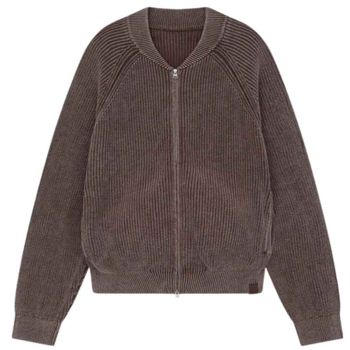 Chaqueta Bomber de Punto Acanalado Marrón Oscuro para Hombre, Chaqueta Bomber Casual con Cierre y Puños y Dobladillo Acanalados, Chaqueta de Moda