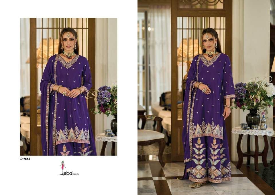 Chinon pesado con trabajo de bordado Salwar Kameez Palazzo Suit para una ocasión especial del Festival de La India
