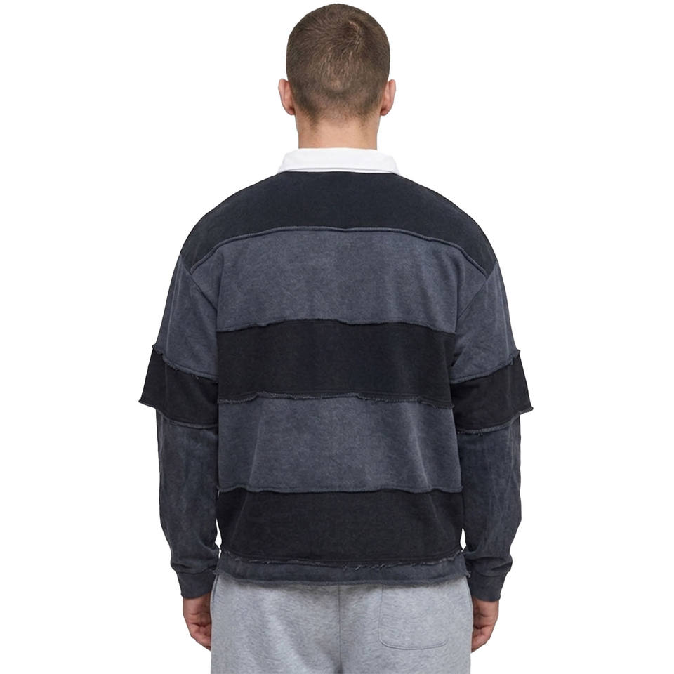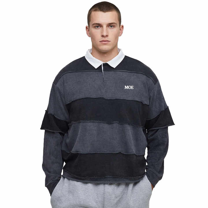 Camisas de hombre de algodón grueso con paneles desgastados y cuello, corte holgado oversize, estilo streetwear, personalización de marca, fabricación OEM, suministro a granel