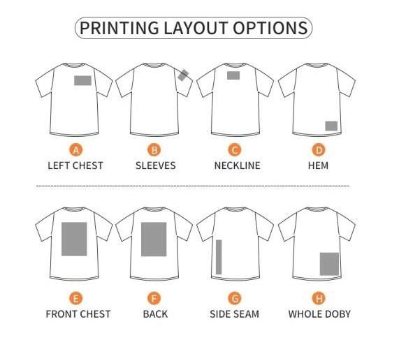 Posición del logotipo:Frente, Espalda, Manga izquierda, Manga derecha, Dobladillo inferior, Cuello trasero