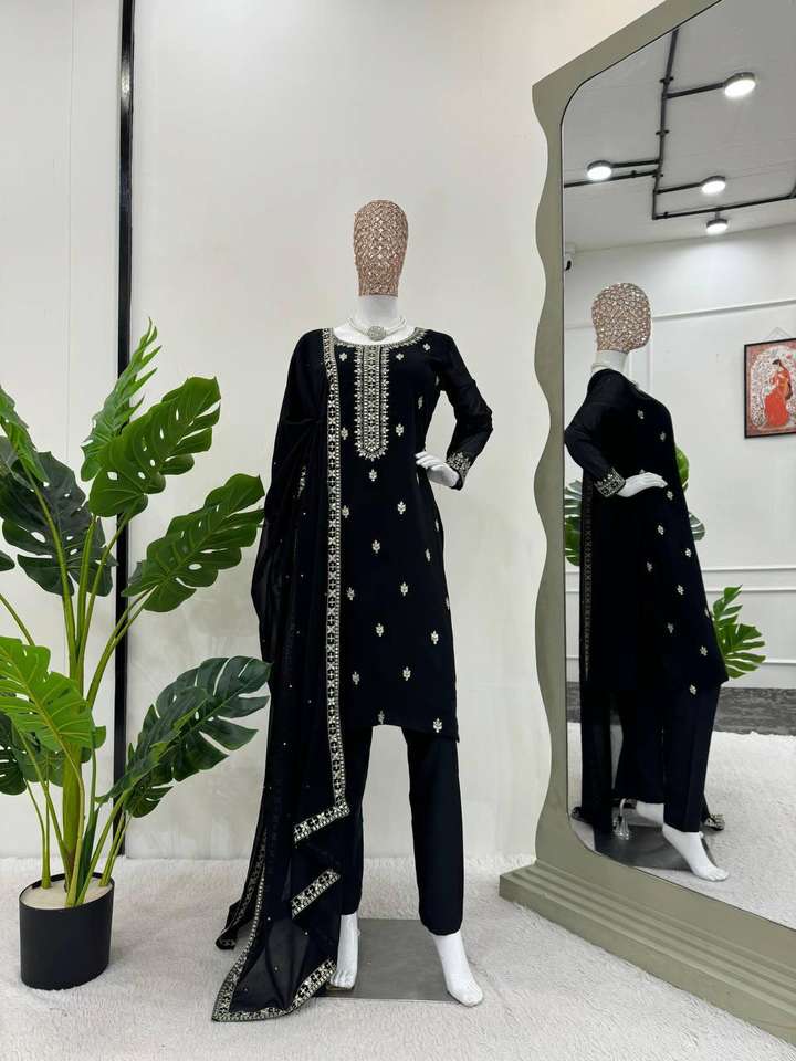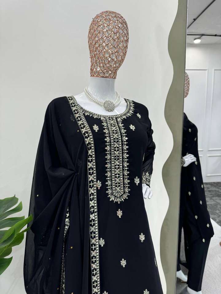 Nombre del Producto:Pantalón superior con bordado de lentejuelas de georgette sintético con Dupatta