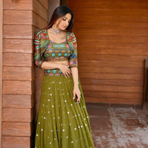 Lehenga-Chaqueta y trabajo bordado de diseñador pesado, chaqueta con blusa completamente cosida, trabajo impresionante de tela Georgette