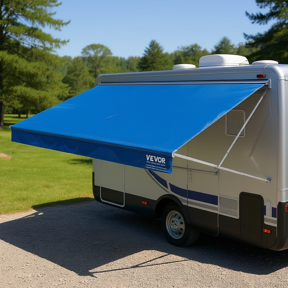 Toldo para caravana de 17'2" de largo, de PVC impermeable, retráctil manual, para exteriores, para remolque.