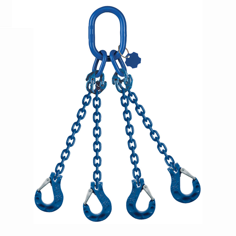 Eslingas de Cadena de Alta Resistencia G80, Ganchos de Cuatro Puntas, de una Sola Pierna, Ajustables, Material 20Mn2, Superficie de Electroforesis para Grúa