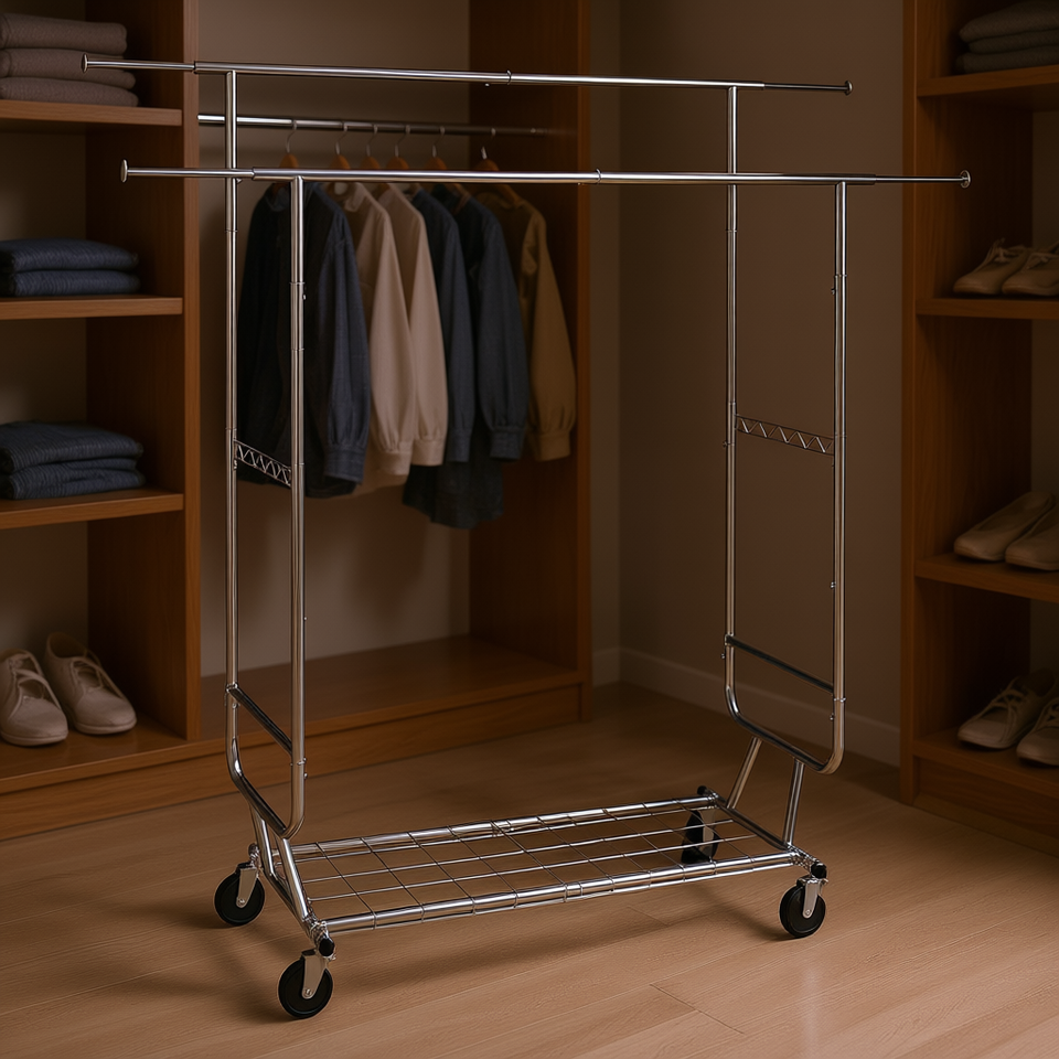 Perchero de Ropa Ajustable de Alta Resistencia con Doble Barra, Capacidad de 600 Libras, Organizador de Ropa de Acero Inoxidable para Dormitorio