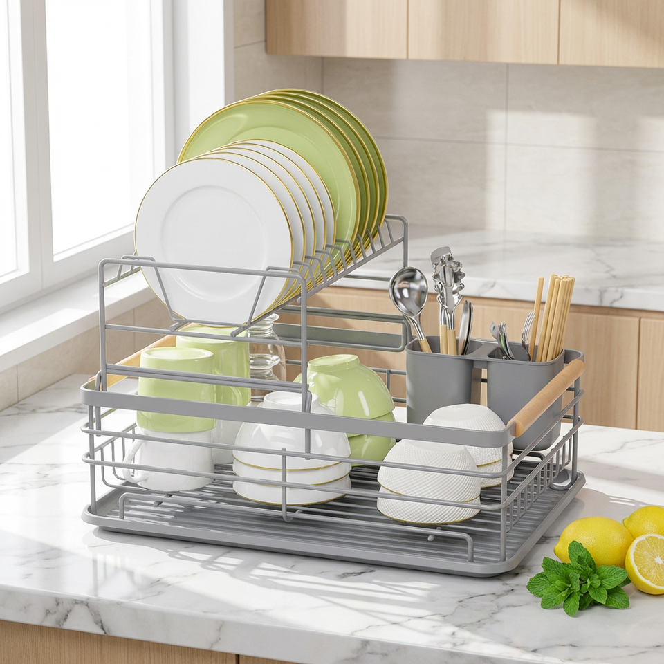 Escurridor de Platos de Acero al Carbono de Alta Resistencia, Grado Profesional, Gran Capacidad, con Bandeja de Goteo Extraíble para Uso en Restaurantes y Hogares