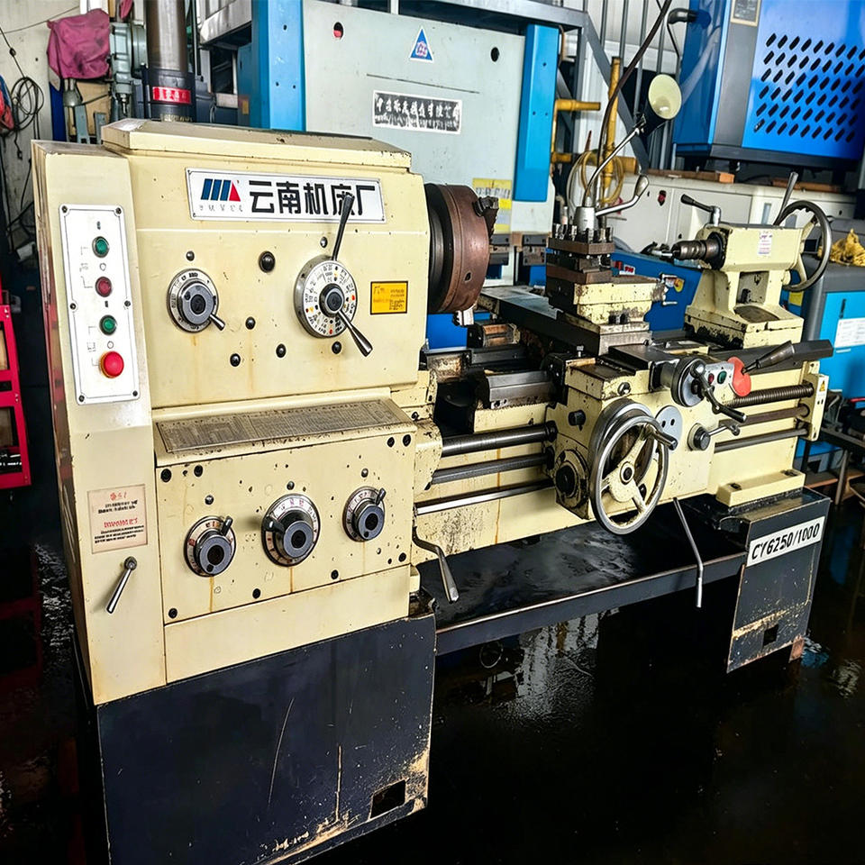 Torno de uso general de alta resistencia con estructura de hierro fundido rígido, gran altura de giro sobre la bancada y portaherramientas completo para procesamiento en taller