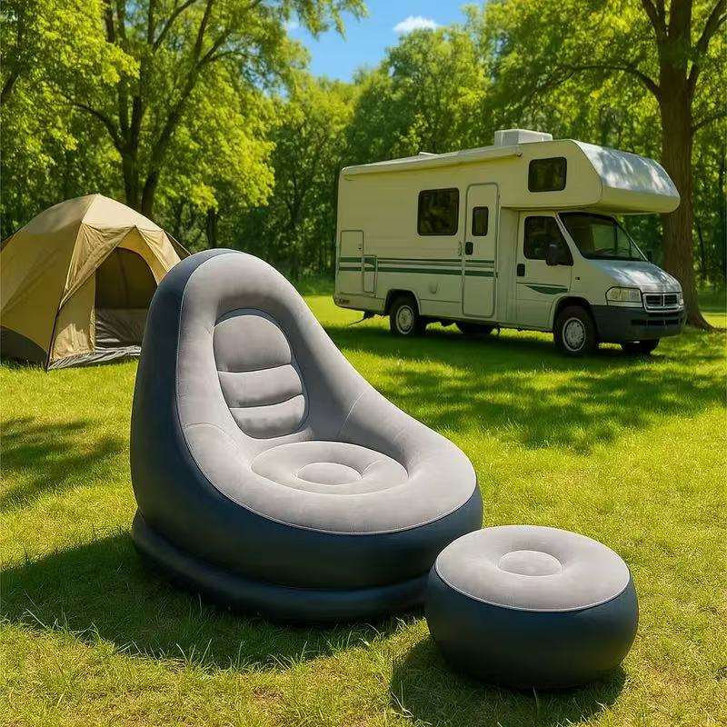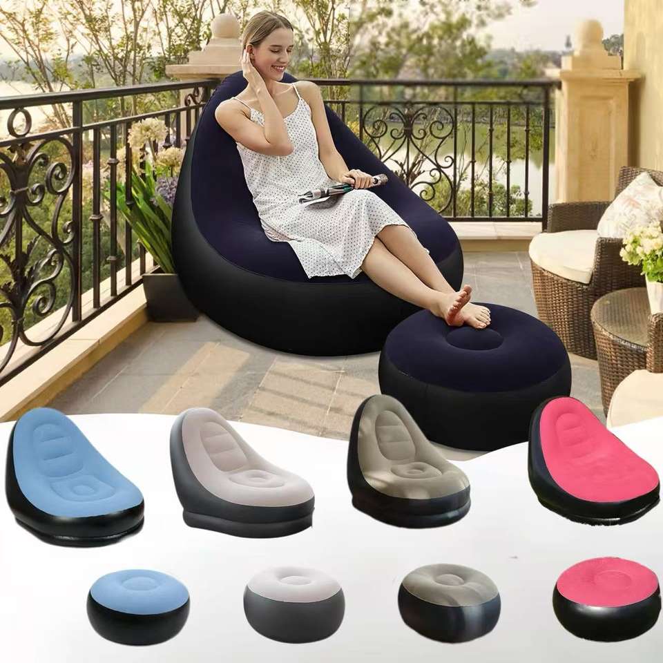 Sofá Inflable Resistente, Sillón de Tela Aterciopelada con Reposapiés para Comodidad en Interiores y Exteriores