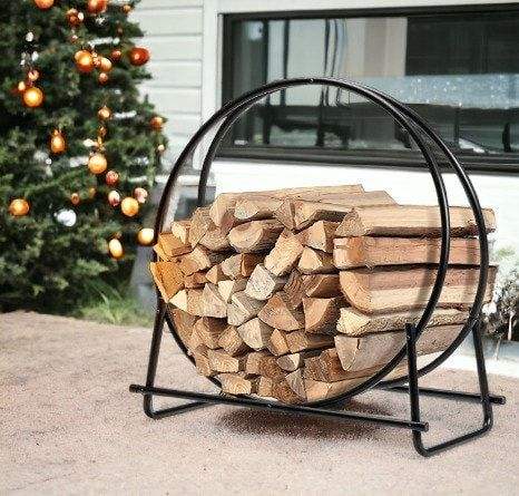 Estante de leña personalizable con recubrimiento de polvo negro de hierro de alta resistencia para chimenea, decoración moderna para el hogar, soporte de almacenamiento de madera