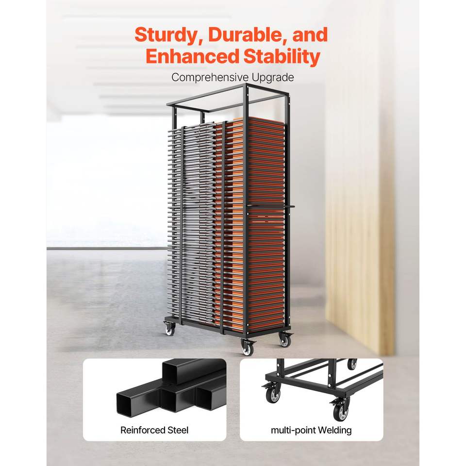Carrito Metálico Plegable de Alta Resistencia para Almacenamiento de Sillas, con Capacidad para 500 LBS y 60 Sillas, Carrito Giratorio Tipo C para Hotel