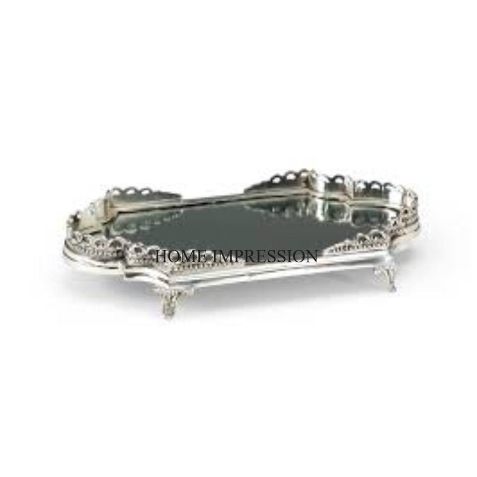 Marco chapado en oro de alta calidad de diseñador de cadena de lujo único de metal resistente con bandejas de servicio de restaurante y hotel de espejo de vidrio