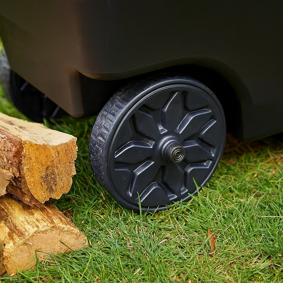 Carretilla de Jardín Resistente de Polietileno con Mecanismo de Volteo Patentado para Transportar Tierra, Leña y Mulch GARPYC000