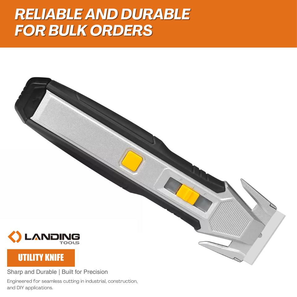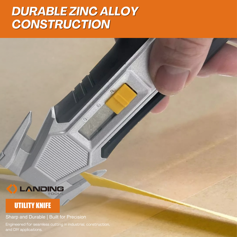 Cuchilla retráctil de alta resistencia, cuerpo de aleación de zinc, agarre de TPR, hoja desprendible, para uso en almacenes