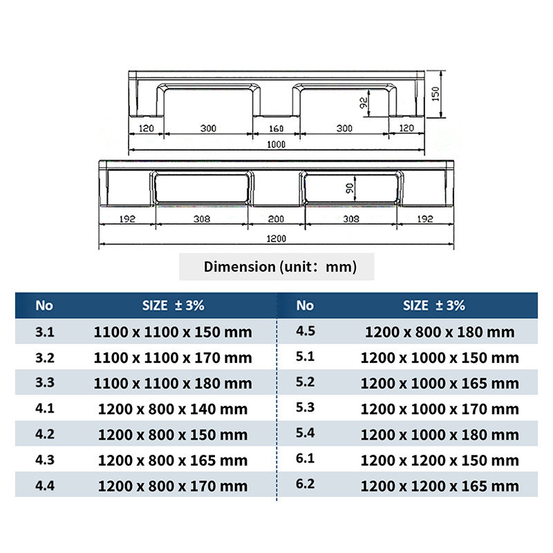 Nombre del producto:Palet de plástico HDPE apilable y reversible