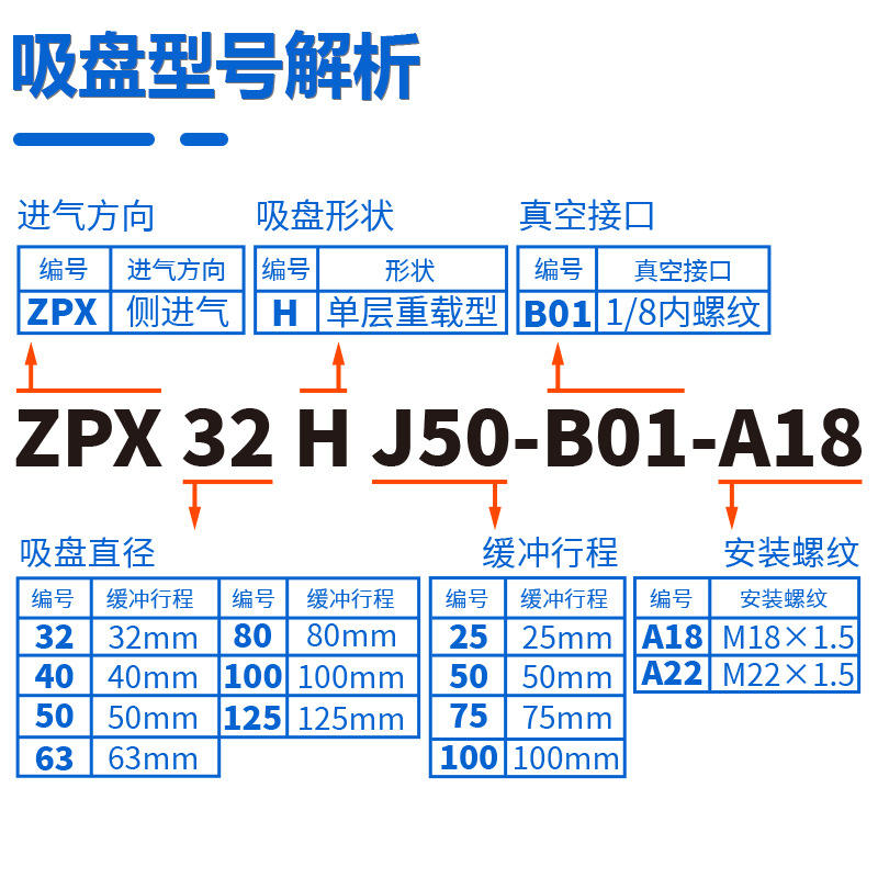 Ventosa de Succión Lateral de Alta Resistencia con Accesorios de Amortiguación, Potente ZPX40H/50/80/100HJ50-B01-A18