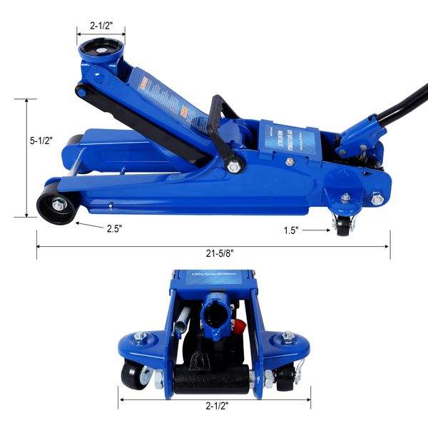 Gato hidráulico de suelo de acero de alta resistencia para carreras, 2.5 toneladas, perfil bajo, bomba de elevación de pistón único, rango de elevación de 3.5 a 14.50 pulgadas, para coches