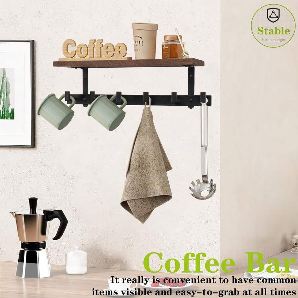 Perchero de Pared Resistente con Estantes de Madera y Ganchos para Uso en el Hogar o la Oficina