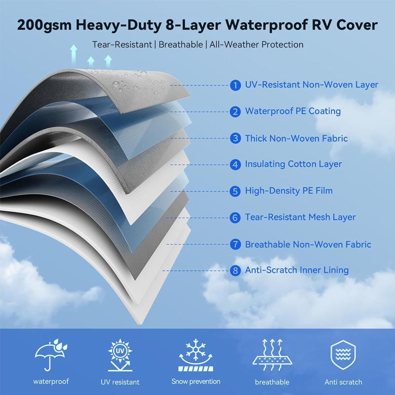 Heavy Duty impermeable resistente a las roturas Anti-UV autocaravana Camper cubierta a prueba de viento 24-27 'cubierta de remolque de viaje