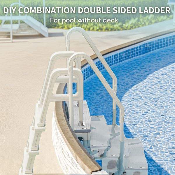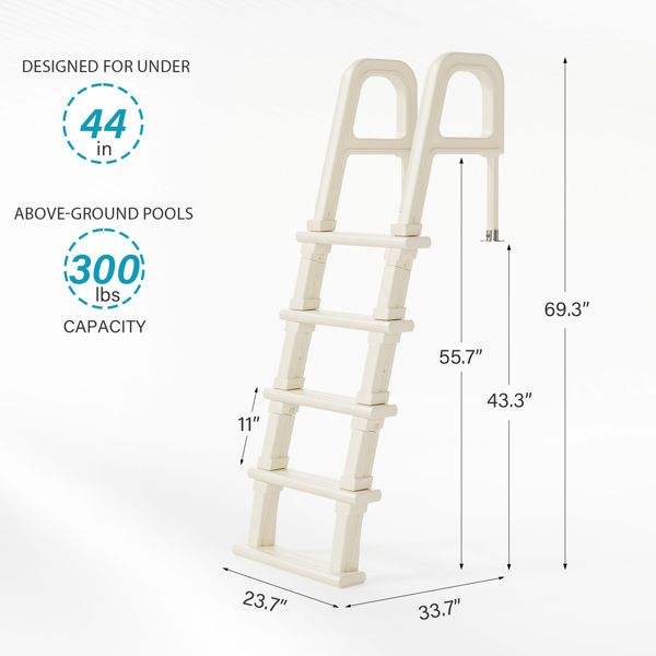Escalera Resistente Blanca para Piscina, Escalones Ajustables de 47 a 54 Pulgadas para Piscinas Elevadas