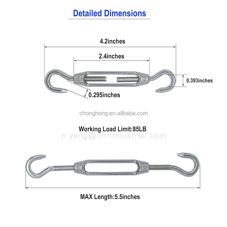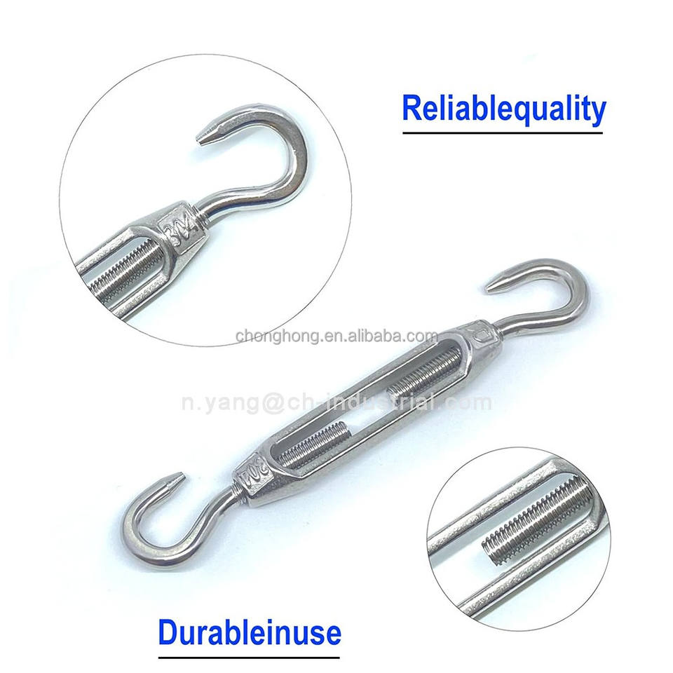 Tensor de Cable de Acero de Alta Resistencia, Tensor de Giro de C a C, Herrajes para Toldos, Tensor de Gancho a Gancho de Acero Inoxidable M4