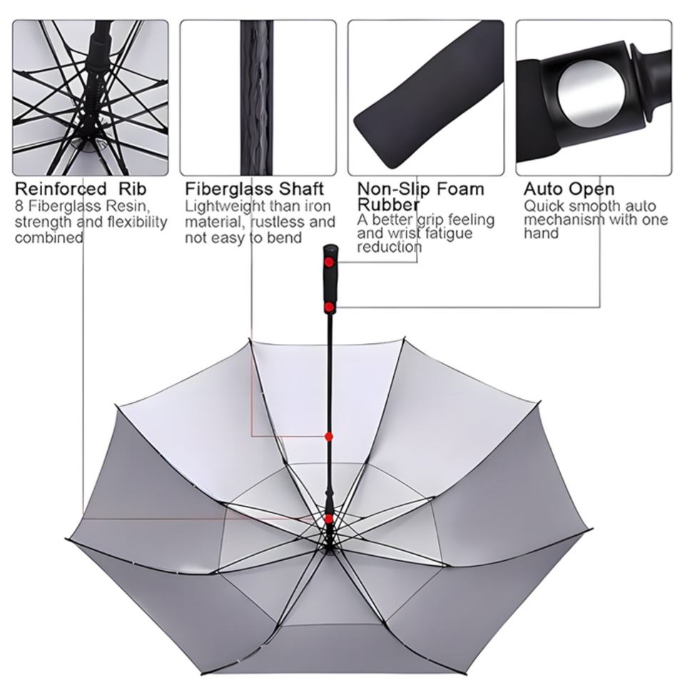 Paraguas de Golf Extra Grande y Resistente de 72 Pulgadas, Doble Capa, Resistente al Viento, con Ventilación, Protección UV, Control Manual, Paraguas Resistentes
