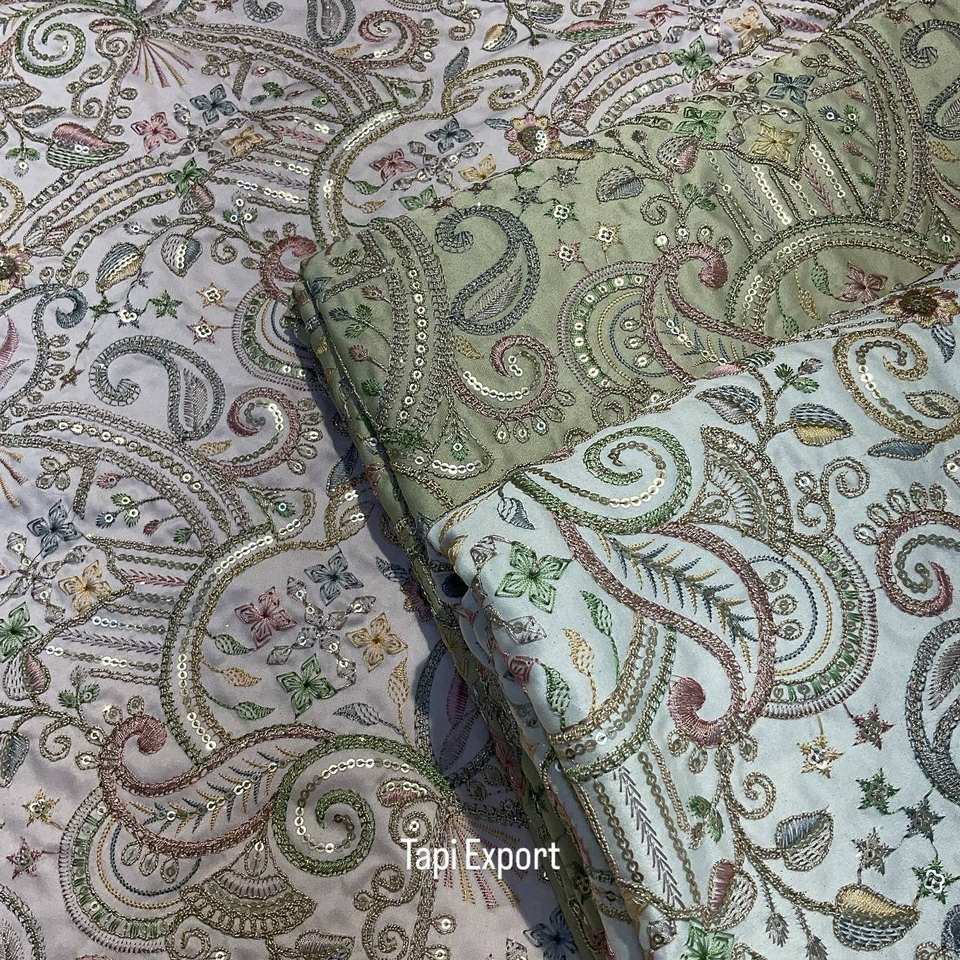 Tela de bordado pesado con múltiples hilos Trabajo elegante y trabajo de secuencia para un diseño único