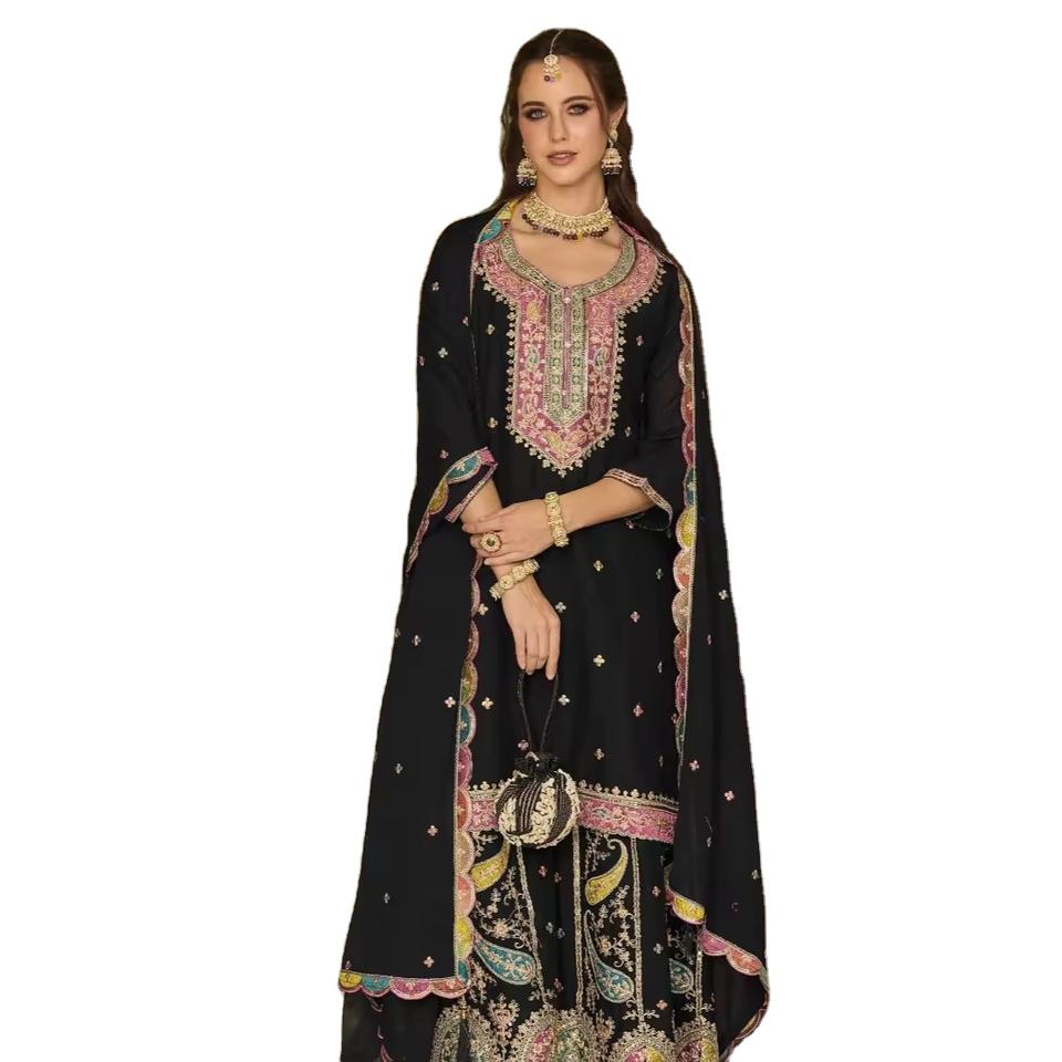 Bordado pesado trabajo elegante y traje hecho a mano con tela chino de colores Premium para la venta en línea