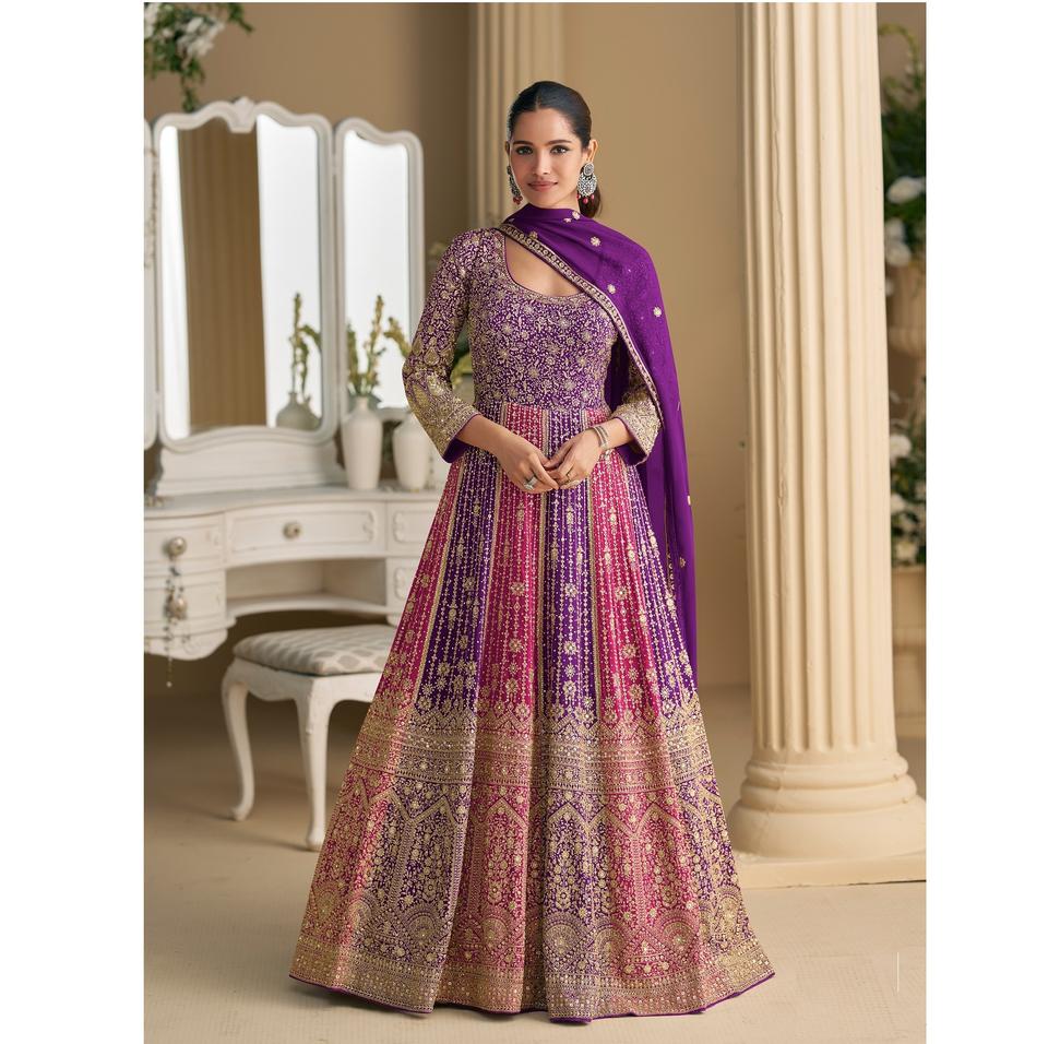 Vestido Anarkali con Bordado Intenso, Vestido de Novia Listo para Usar de Georgette Premium Real para Venta de Exportación desde India