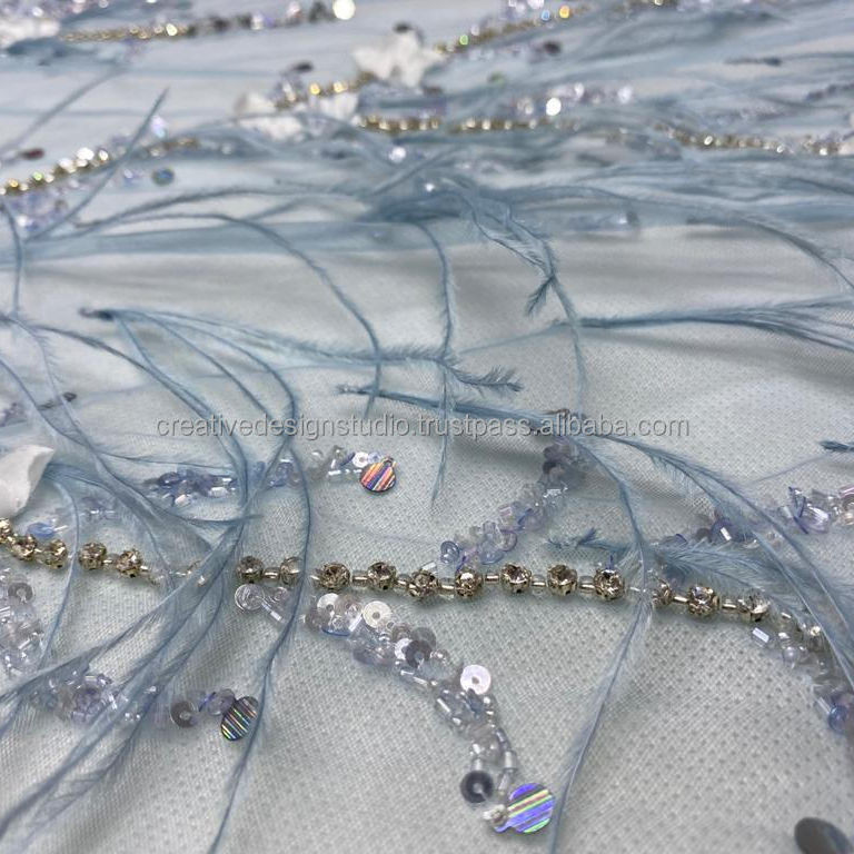 Tela de diseñador de bordado con cuentas pesadas con lentejuelas de cristal para bodas y fiestas Fabricado por el proveedor