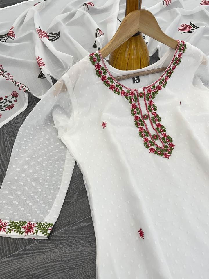 Conjunto de salwar/kurti tradicional de georgette sintético pesado con bordados de hilo y lentejuelas, tallas S a XXL, para mujer.