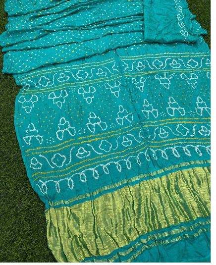 Nombre del Producto:Sari de seda Bandhej Gajji tradicional