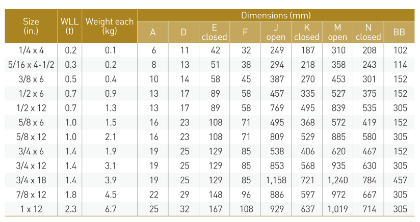 1/4x4-1x12 pulgadasDiámetro compatible de la cuerda