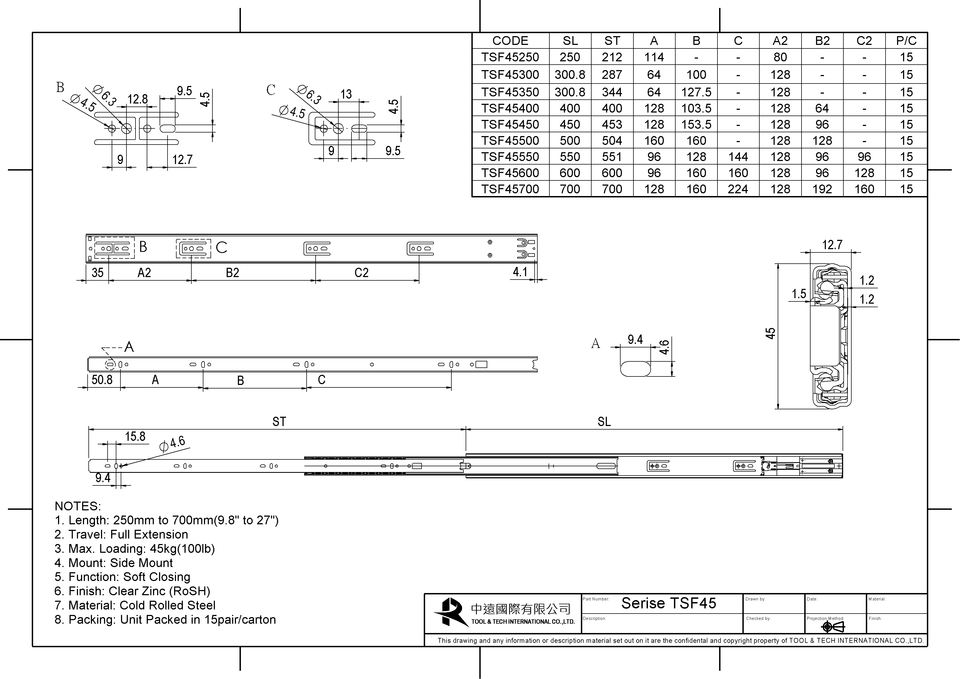 Tipo:Corredera de rodamiento de bolas de cierre suave
