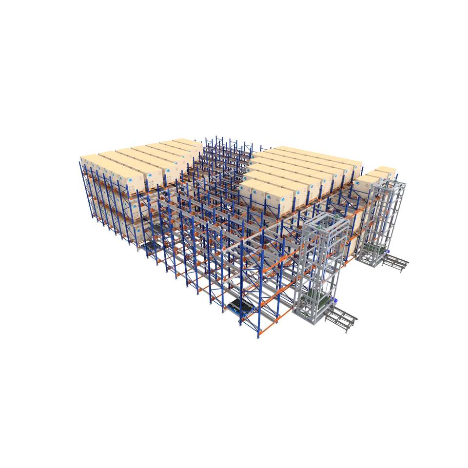 Sistema de estanterías de almacén con radiocontrol para carga pesada, para almacenamiento automatizado de palets y operaciones de manipulación de materiales
