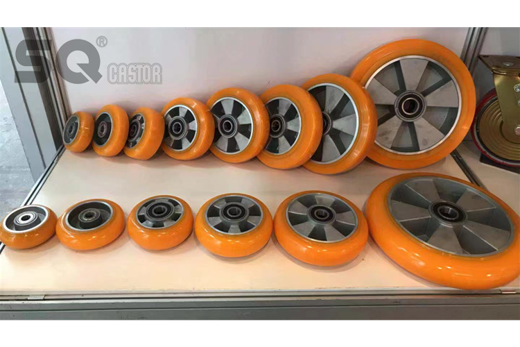 Carro de herramientas de freno total giratorio de 5 pulgadas de carga pesada, rueda giratoria de Pu fundida con núcleo de aluminio