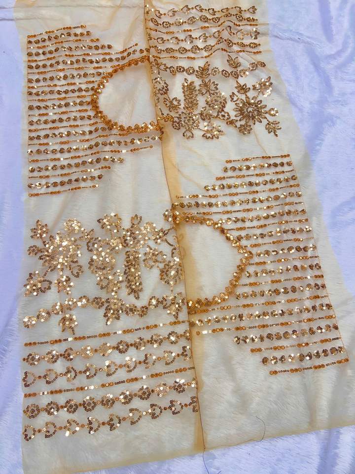 Sari de Nailon Pesado con Diseño de Mariposa, Adorno de Lentejuelas Multicolores y Borde de Encaje con Patrón Floral para Adultos