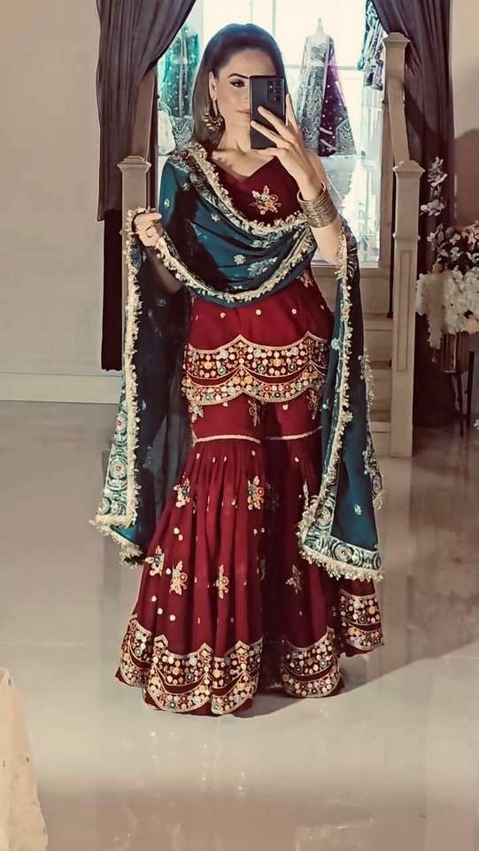 Nombre del producto:Conjunto de Sharara y Dupatta Faux Georgette Top