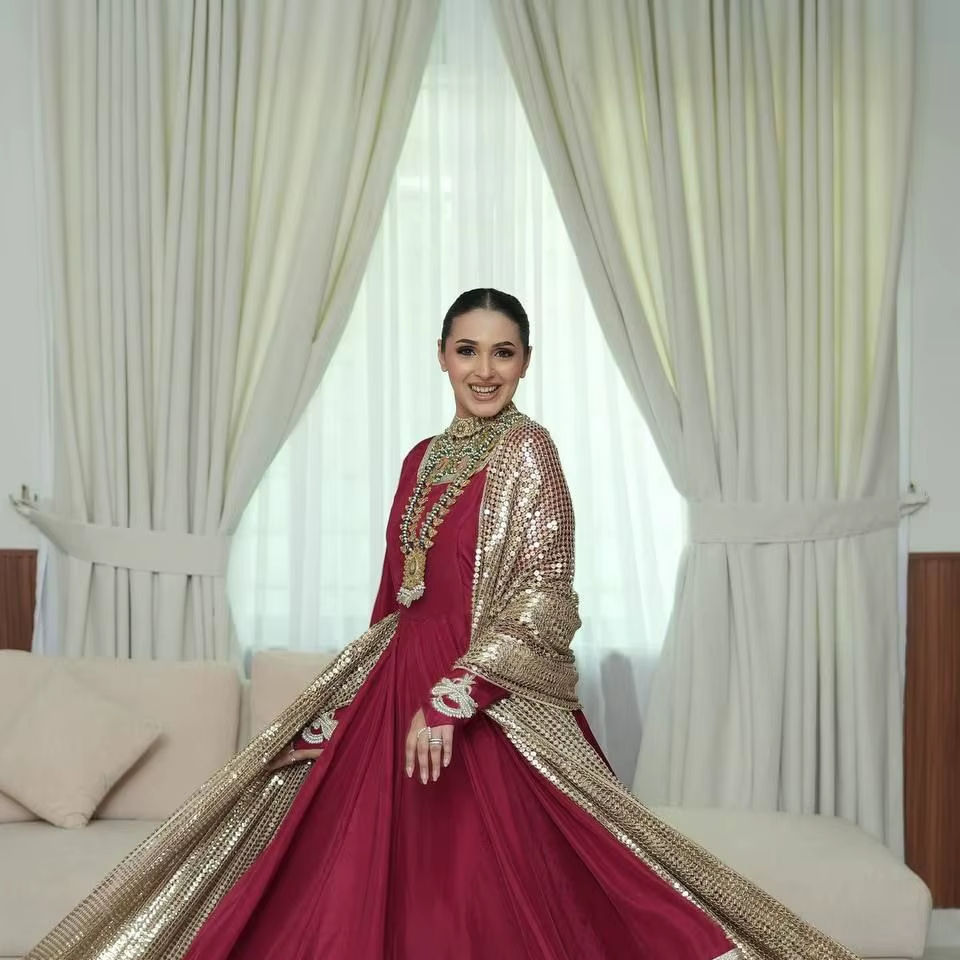 Nombre del Producto:Anarkali y Dupatta de Georgette Sintético