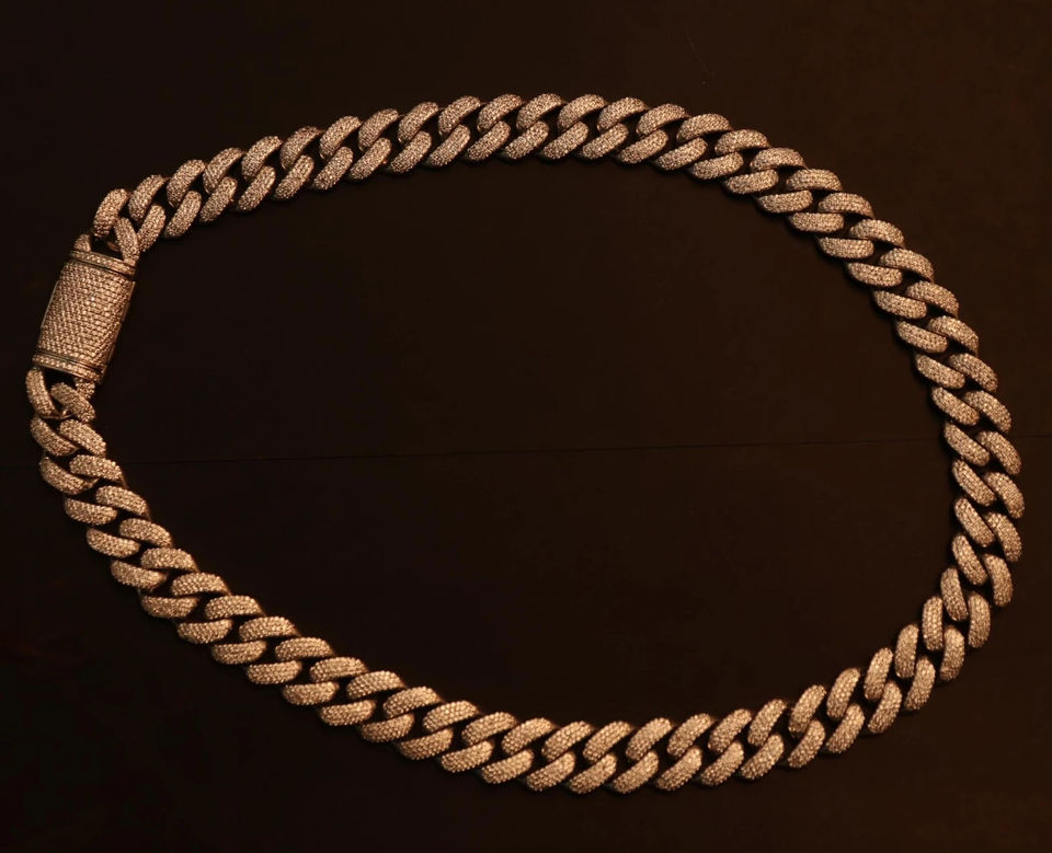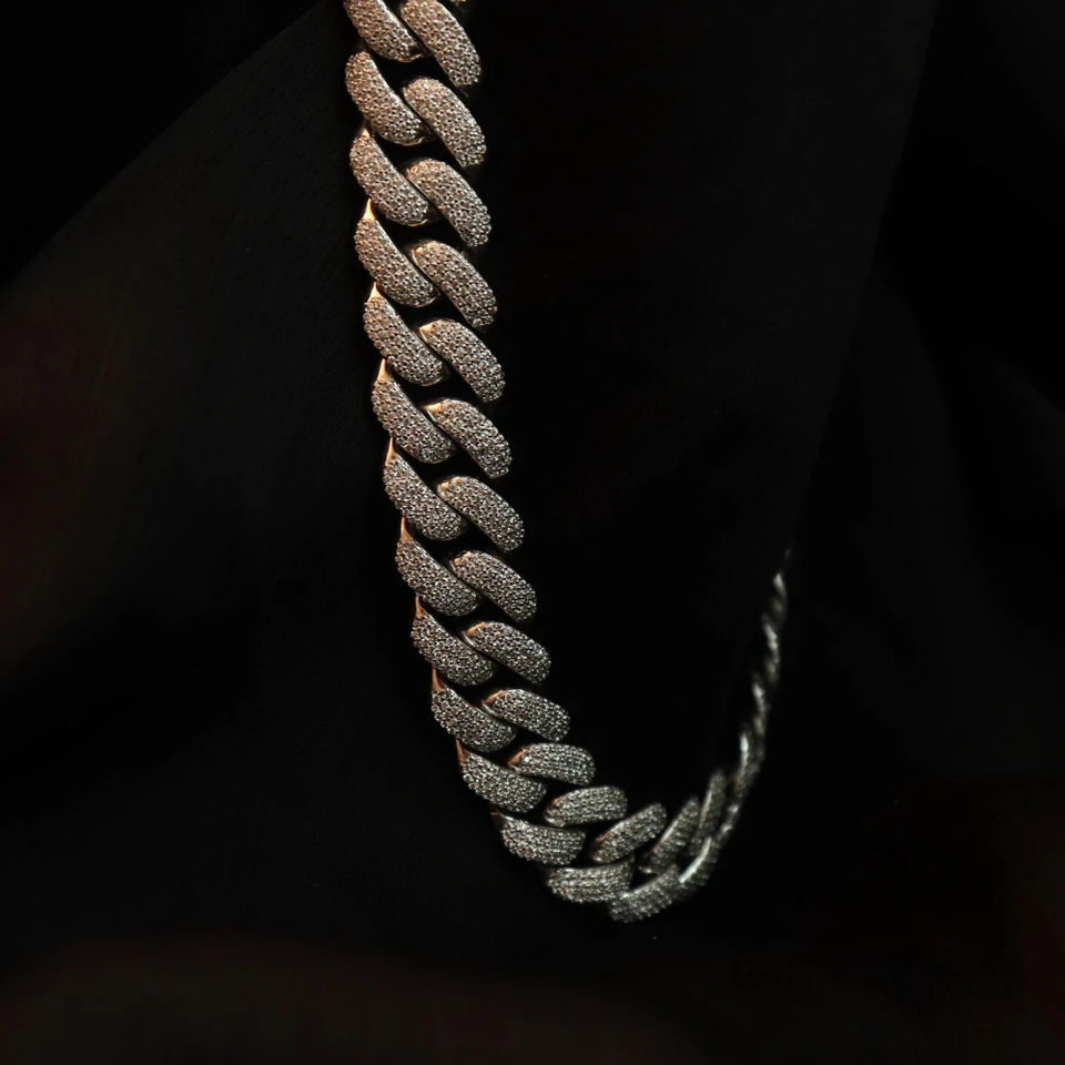 Cadena Cubana de Plata de Ley 925 Chapada en Oro con Moissanita y Diamantes de Calidad VVS, Estilo Rapper, Ideal para Regalo
