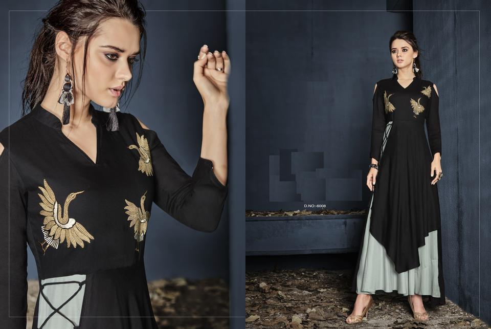 Heavy Riyon Long Kurti con trabajo de bordado para venta en línea