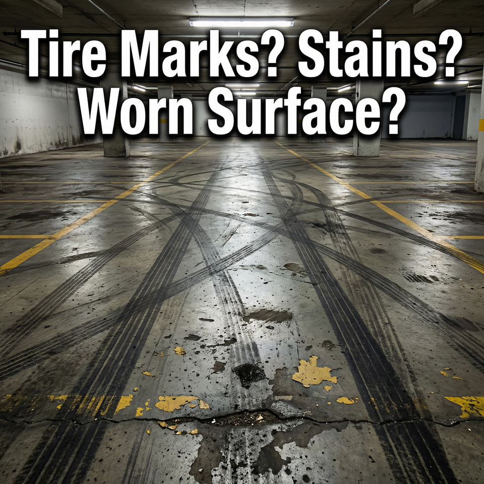 Recubrimiento protector estable, resistente al desgaste, impermeable y apto para tráfico intenso para pasillos peatonales comerciales y superficies de estacionamiento.