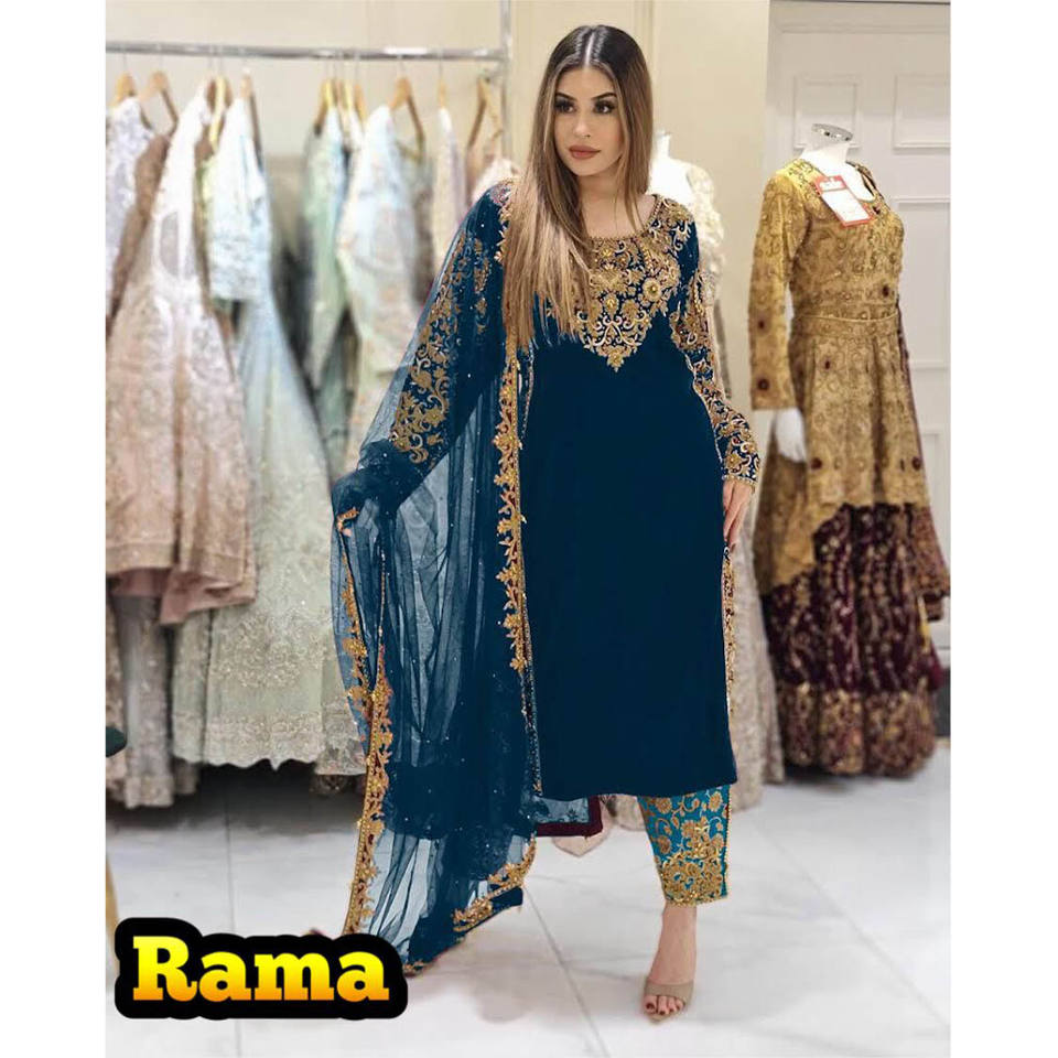 Conjunto de Top y Pantalón de Terciopelo Pesado con Bordado y Dupatta de Red con Diseño de Mariposa Rama