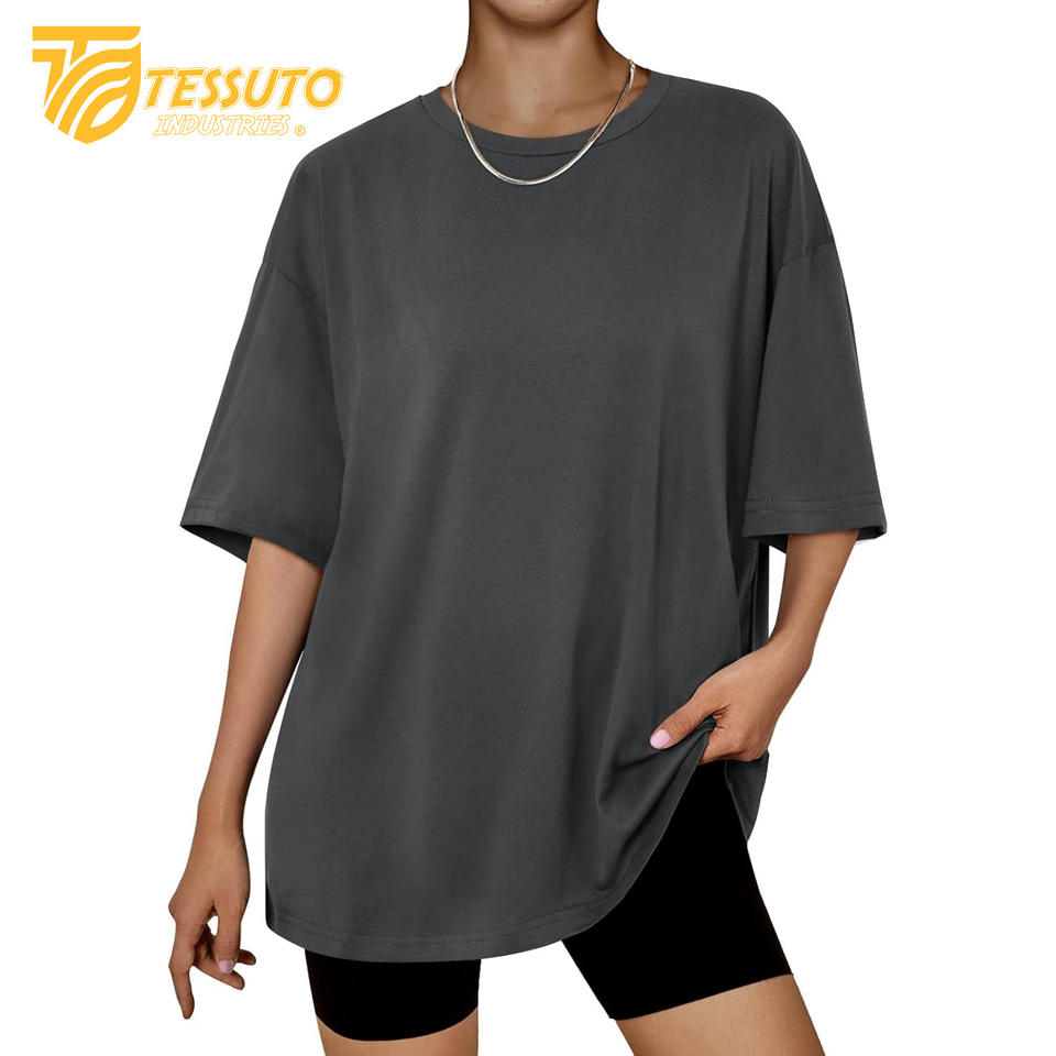 Camiseta básica de gran tamaño con logotipo de impresión personalizado de peso pesado Camiseta de algodón 100% de moda de talla grande de alta calidad para mujer