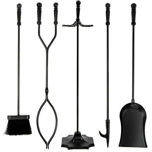 Juego de herramientas de fuego de hierro de base pesada con mangos curvos y encanto del viejo mundo adecuado para la estética y el fuego