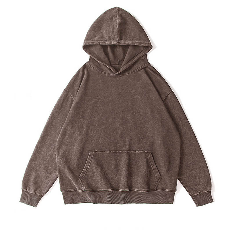 Sudadera con Capucha de Primavera de Corte Regular, 400 Gsm, Lavado Vintage, Tinte Liso, Bordada, de Poliéster/Algodón