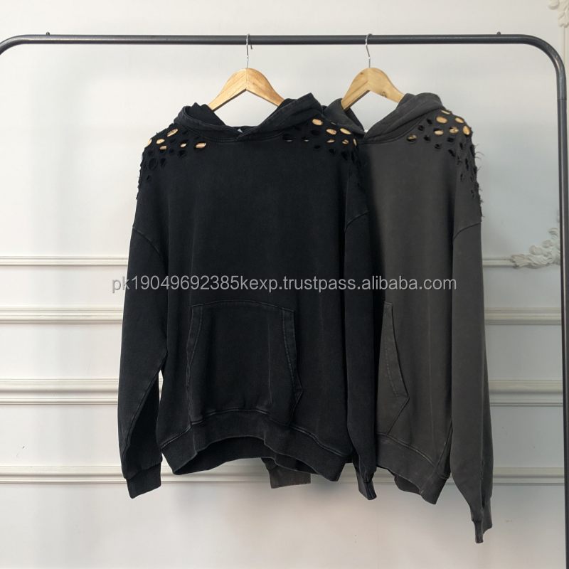 Sudadera informal de gran tamaño personalizada desgastada de Algodón 100% con lavado ácido de peso pesado, ropa de calle Vintage, Sudadera con capucha para fabricación de hombres