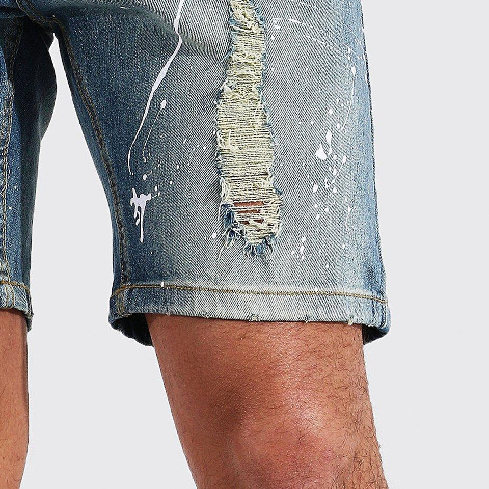 Remaches de piedra acrílica de peso pesado Alto diseñador Carpintero Pantalones cortos de mezclilla Hombres personalizados Verano Servicio OEM Bordado Sólido Medio