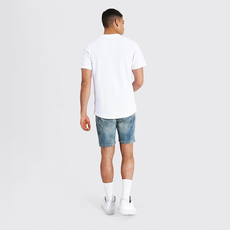 Pantalones Cortos de Mezclilla para Hombre, de Diseño Exclusivo, con Remaches de Acrílico Resistentes, Servicio OEM, Bordado, Color Sólido, Tiro Medio, Verano