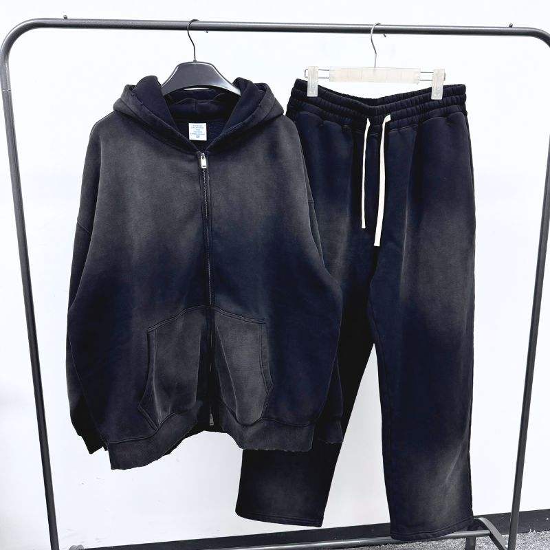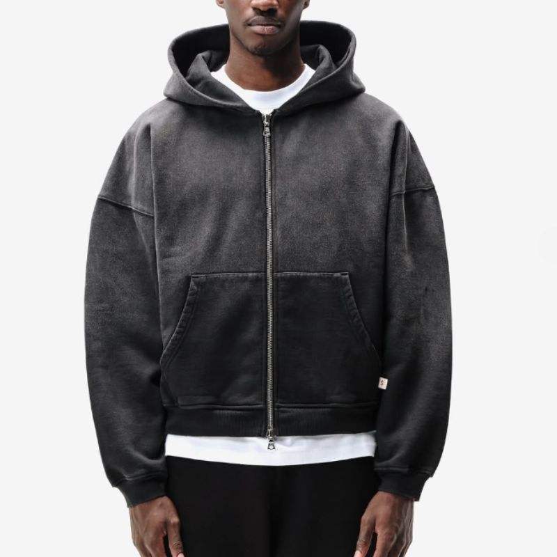 Heavyweight Custom Oversized Zip Fleece 100% algodón Eco-Friendly Blank Plain Streetwear Vintage Acid Wash Pullover Distressed