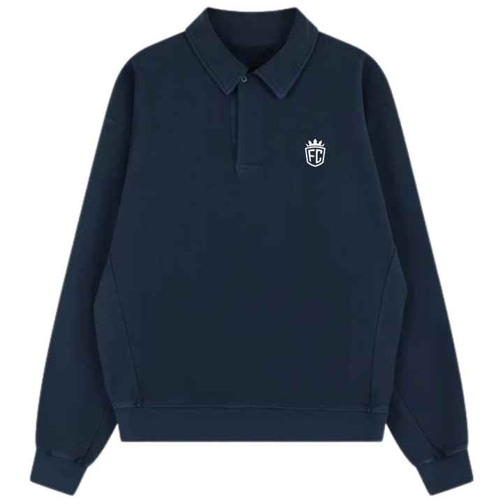 Conjunto de Sudadera Polo y Jogger de Algodón Grueso Lavado Azul Marino para Hombre, Pantalones Deportivos de Moda Urbana con Cuello Acanalado